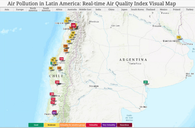 Ze względu na zimną pogodę, na południu, zanieczyszczenie powietrza jest głównie spowodowane przez drewnopochodne kalefaktory, a w Santiago (stolica w centrum kraju) mieszankę pochodzącą z przemysłu, samochodów i jego wyjątkowego położenia geograficznego między dwoma ogromnymi łańcuchami górskimi.