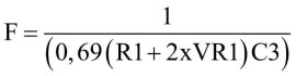 Timer NE555 (IC2), skonfigurowany jako multiwibrator astabilny, jest używany jako źródło zegara dla licznika dekadowego IC3. Wygenerowany impuls zegarowy jest dostępny na styku wyjściowym 3 układu IC2. Częstotliwość impulsu zegarowego można obliczyć korzystając z zależności: