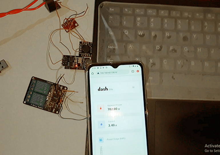 Włącz zasilanie modułu i podłącz dowolne urządzenie AC, które pobiera prąd większy niż wartość progowa. Po wykryciu tego faktu, moduł przekaźnikowy powinien automatycznie przerwać obwód. Aby wyświetlić licznik energii i monitorować prąd wysyłany przez urządzenia AC, podłącz się do domowego WiFi poprzez moduł ESP8266. Następnie wpisz adres IP w przeglądarce, aby wyświetlić panel nawigacyjny zużycia energii.