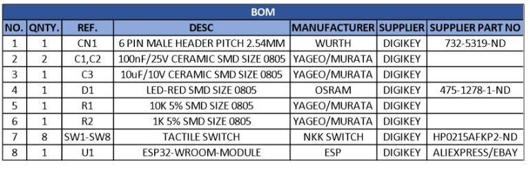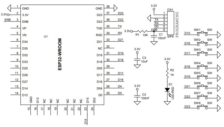 - SW1:GPIO15, SW2:GPIO16, SW3:GPIO17, SW4:GPIO18, SW5:GPIO19, SW6:GPIO21, SW7:GPIO22, SW8:GPIO23