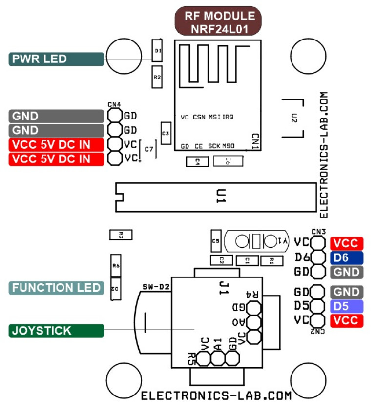 - Joystick J1 >> Arduino Analog Pin A0 i A1