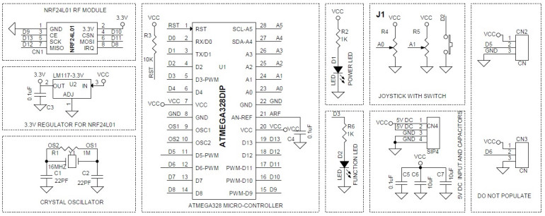 Kod Arduino jest dostępny do celów testowych, a projekt działa jako nadajnik i napędza płytkę sterownika silnika DC za pomocą tego kodu. Projekt jest kompatybilny z naszą płytką kontrolera prędkości i kierunku silnika DC oraz 8-kanałową płytką serwomechanizmu RC.