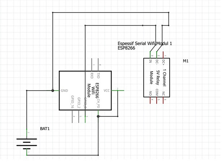 Podłącz elementy tak, jak pokazano na schemacie. Zasil moduł ESP i przekaźnik odpowiednio napięciem 3,3 V DC i 5 V DC. Potem podłącz do modułu przekaźnika urządzenie AC, które będzie sterowane. Pin NO powinien być połączony z przewodem fazowym urządzenia AC. Pin COM powinien być połączony z przewodem fazowym wtyczki urządzenia AC, natomiast przewód neutralny urządzenia AC z przewodem neutralnym wtyczki.
