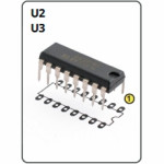 Na drugiej płytce montujemy wyświetlacz LED. Po zmontowaniu obydwu płytek należy połączyć je ze sobą za pomocą kątowej listwy szpilek goldpin, widok gotowych, już połączonych płytek pokazano na fotografii 6. W następnym kroku dołączamy przyciski S1 i S2 oraz opcjonalnie brzęczyk PIEZO. Do tego celu należy użyć złącz śrubowych, połączeń należy dokonać wzorując się rysunkiem 5. Gdyby w trakcie użytkowania zegara okazało się że zegar znacząco spóźnia się lub spieszy można eksperymentalnie dobrać wartość kondensatora C1.